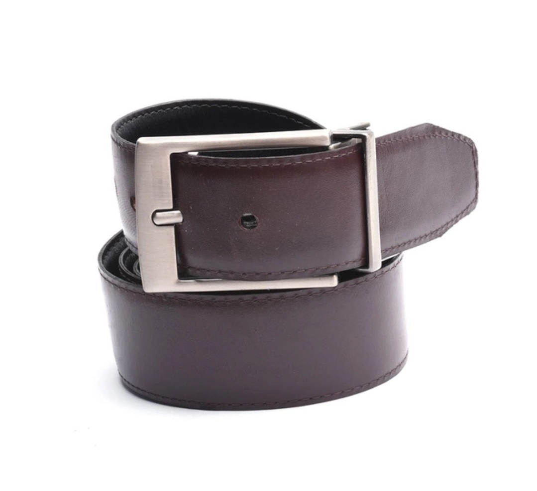 Cinto Social Confeccionado em Couro Legítimo, fivela em aço de Alta Qualidade, fivela Giratória,para Escolha de usar Lado Preto ou Marrom